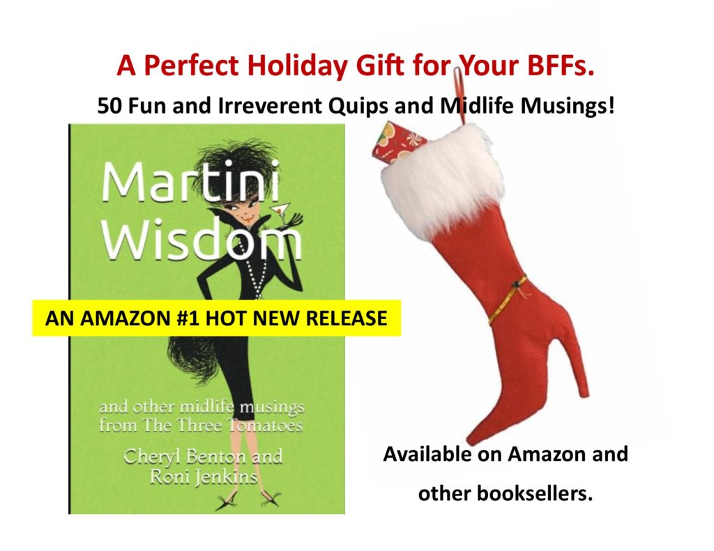 Martini Wisdom from The Three Tomatoes mother and daughter duo, Cheryl Benton and Roni Jenkins, is the perfect anecdote to all those motivational and inspirational books about midlife and beyond. It’s the inappropriate thought bubbles that the “martini ladies” dare to say out loud. Come on…you know you’ve had some of these thoughts too. It’s the perfect anywhere read and you’re going to want to share it with your BFFs too. Get the book.