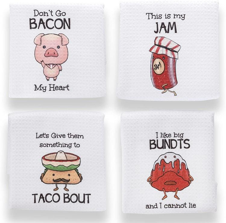 4pc Kitchen Towel Set, Fun Pun. Amazon $25.99