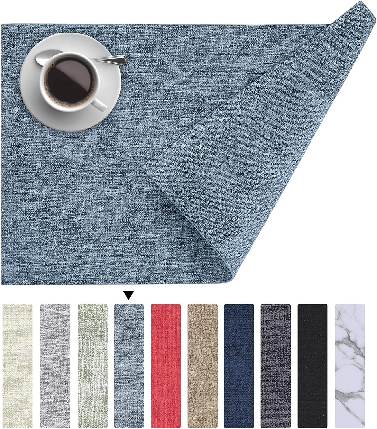 Our placemats are made of 100% artificial leather polyester. Exquisite and elegant leather placemats, exquisite workmanship, strong and durable, can be used for a long time. They can effectively protect your dining table from scratches, heat and stains, thereby extending the service life of the dining table. Set of 6. Amazon. $25.00
