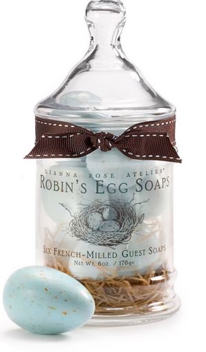 This set of a half dozen robin’s egg soaps feature soothing chamomile and meadowsweet extracts and exfoliating “speckles” of oatmeal and wheat bran, the lusciously lathering French-milled vegetable-based soaps come in a nest inside a tiny apothecary jar and are the size of real robin’s eggs.