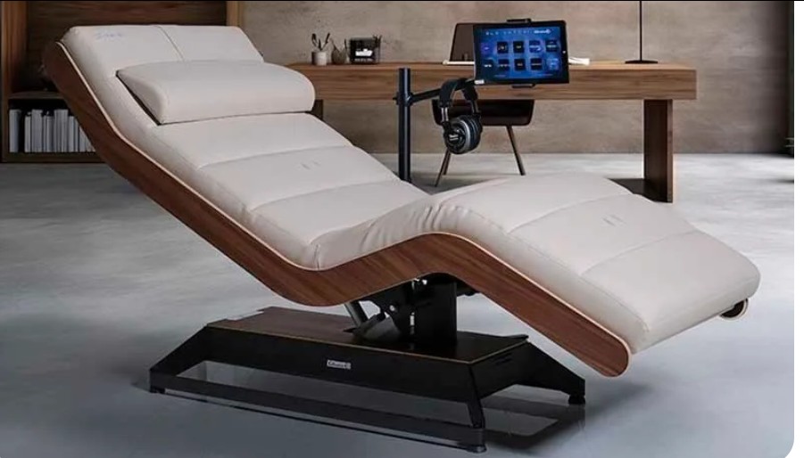 This advanced sleep lounger uses sound frequencies and gentle vibrations to guide the mind into deep relaxation — a reset for body, energy, and soul.