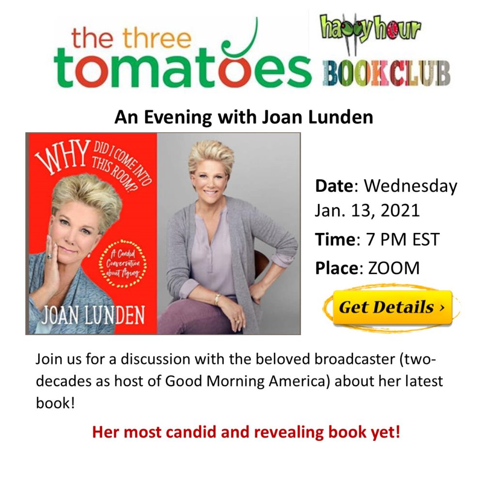 We are thrilled to announce that our January book club guest is acclaimed broadcast journalist Joan Lunden and author of 8 books.  For nearly two decades, Lunden greeted viewers each morning on Good Morning America and was the longest running female host ever on early morning television. She continues to be one of America’s most recognized and trusted personalities. She is a special correspondent on the TODAY Show, host of the CBS series Your Health