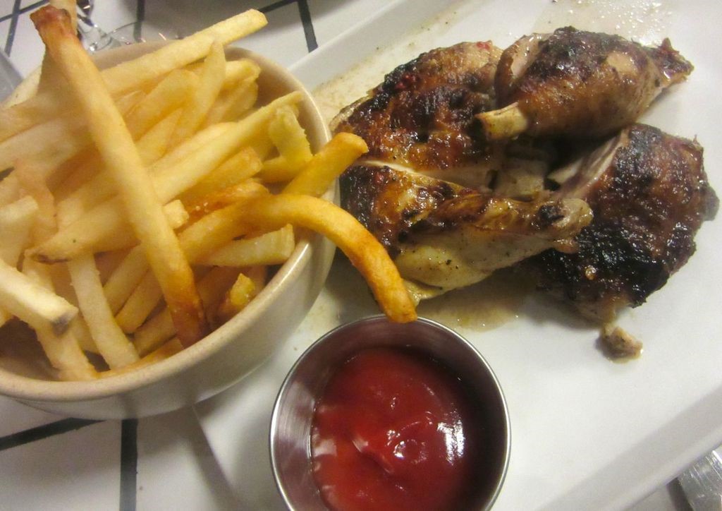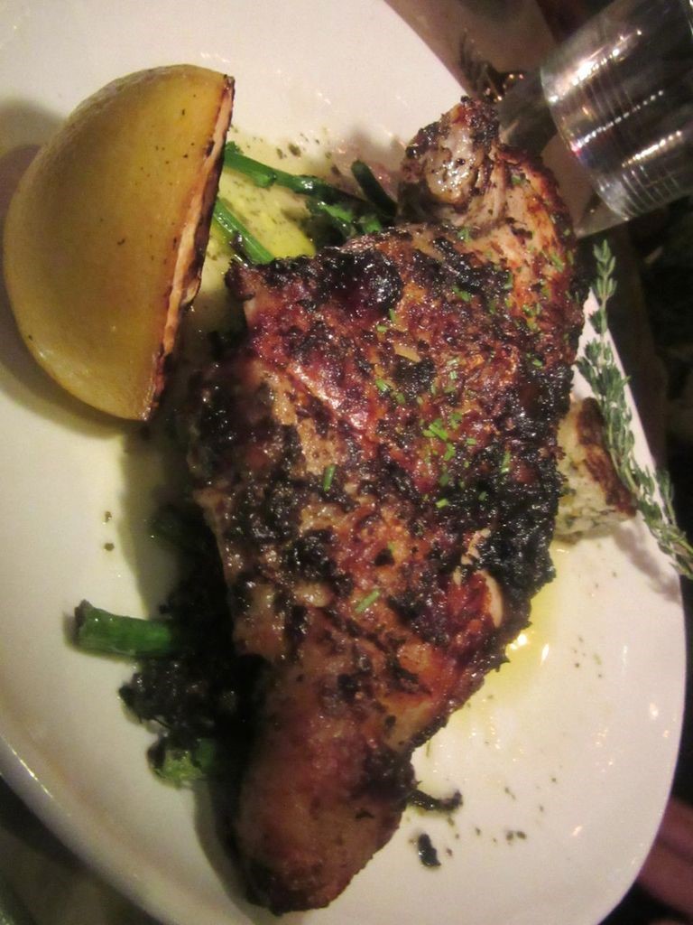 I will actually cite another favorite chicken: George Mendes’ chicken piri piri charred over the embers at Lupulo, where only an occasional companion is brave enough to join me in a swig of its high voltage piri piri sauce. Mendes uses his Portuguese mother’s marinade. “Vinho verde — a spritzy white wine — with olive oil. Paprika, sliced onions, garlic, and bay leaf.” It comes with very good fries. All summer, favas tossed with blood sausage and morels was another don’t-miss (although the green and yellow beans that replaced the favas two weeks ago — Mendes was nowhere in sight — were shockingly undercooked and, of course, morels won’t reemerge for a while). 835 Sixth Avenue corner of 29th Street.