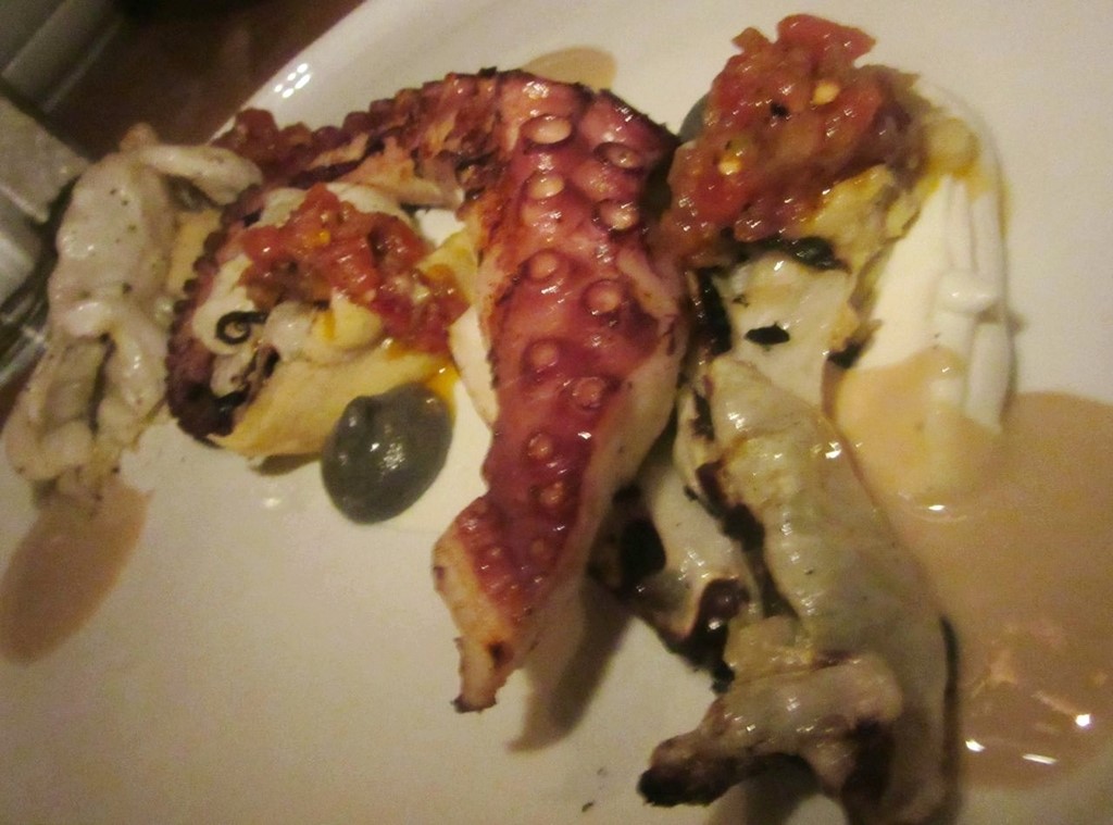 First, a confession. I must admit my love affair with L’Amico has made it harder to fall for just any pom, duck, and berry. Maybe I’m just imagining everything is so good. It was July when I first discovered The Vine, a wine bar in the rear of the Eventi Hotel on Sixth Avenue. It was there that chef Laurent Tourondel was secretly testing ideas for what would be the menu at L’Amico, the restaurant he planned to open after Labor Day. I went every Saturday all summer and made everyone share a blistered pizza or two and, inevitably, the fritto misto of calamari and shrimp with fried herbs and lemon wheels.