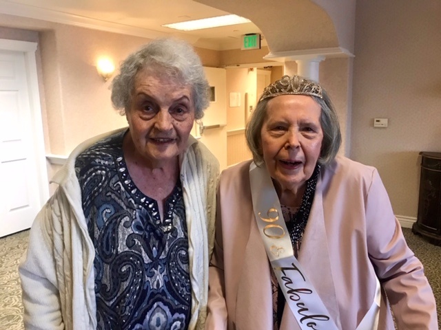 Soon after meeting, Patty and Virginia were helping each other in whatever way the other needed, sitting together for meals, events and activities… the caregivers made sure of it because they were so tickled by their deep friendship. Ginny was always checking on Patty in the mornings reminding her of the schedule and helping to guide her when she needed it. They would visit each other in their rooms for a good old-fashioned girl chat. Patty would insist that she tell Virginia, with a kiss or hug, where she was going when one of her children picked Patty up to take her for an outing and that she would be back. Patty’s children even saw my Mother and Patty holding hands at times. Of course, I made sure Patty was given a place of honor seated next to Virginia, at my Mother’s 90th birthday celebration in 2018.