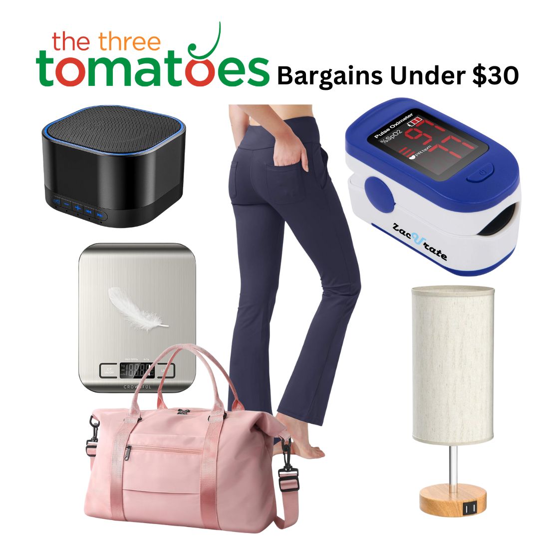 Here are some great Amazon deals with stellar customer reviews and you just might find something you want, like the White Noise Machine that has over 67,000 positive reviews; a fingertip pulse that measures pulse and oxygen levels; a modern bedside table lamp; a digital food scale; an awesome duffle bag; and yoga pants! Happy shopping.