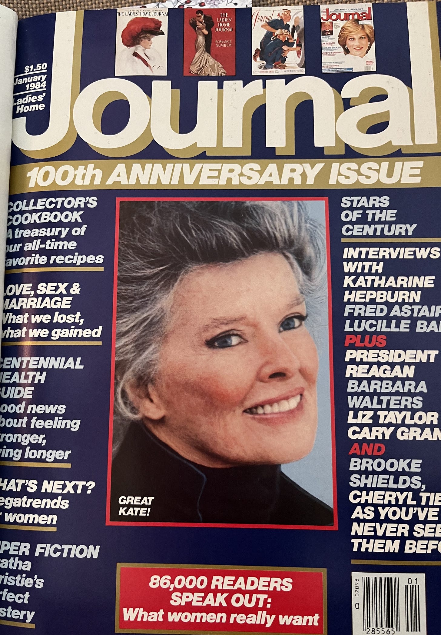I interviewed Katharine Hepburn several times. She remained a surprisingly popular cover girl for Ladies’ Home Journal during the 1980’s. Hepburn, born in 1907, needed and deserved special attention. She was on the cover of the Ladies’ Home Journal’s 100th anniversary issue in January 1984. I presented that issue to President Reagan in the Oval Office. “Great,” he said, “something older than me in the Oval Office.” I’m not sure if he meant the magazine or Katharine.