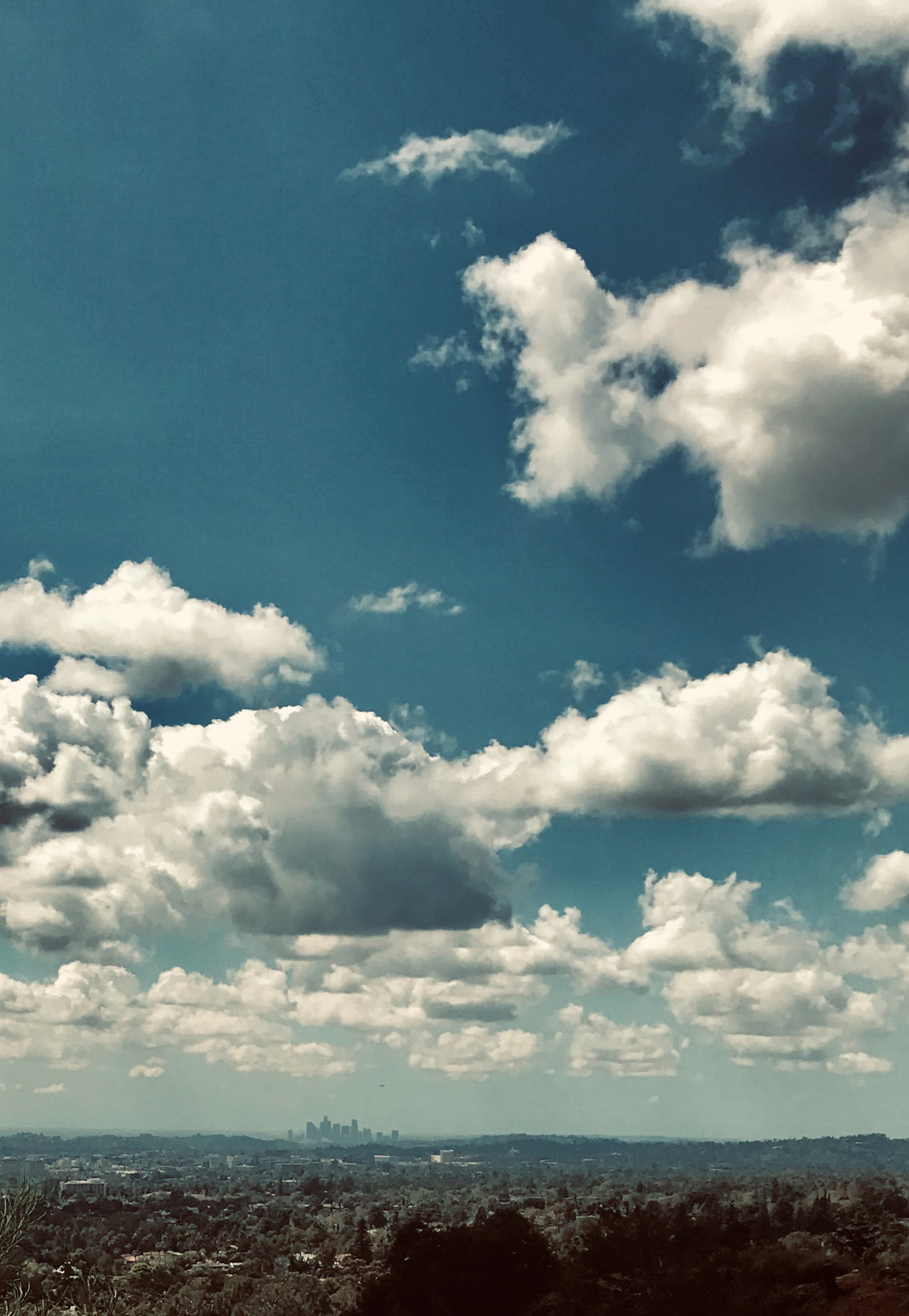Like nuances of a personality or facets of a gem, every city has its angles, aspects, and points of interest that can offer up sometimes starkly different perspectives. You can drive from neighborhood to neighborhood in this vast, spread-out burg and never run out of new visuals, diverse themes and urban stylings. You can turn toward the ocean and watch planes depart from LAX, look north toward the rolling Hollywood Hills; swoop over those hills and you’re in the Valley. A pivot east brings stunning views of the San Gabriel Mountains, which, after the wild rains of recent weeks, are currently snow-covered, making a dramatic backdrop for downtown LA. Then you can actually get out amongst those mountains, traveling east towards Alta Dena and Pasadena to get yourself on the trail up Eaton Canyon. From there, you can look back and downtown suddenly looks a bit like Emerald City springing up on the Yellow Brick Road horizon… which is why I call this photo of big sky and tiny skyscrapers, “Angel City.”