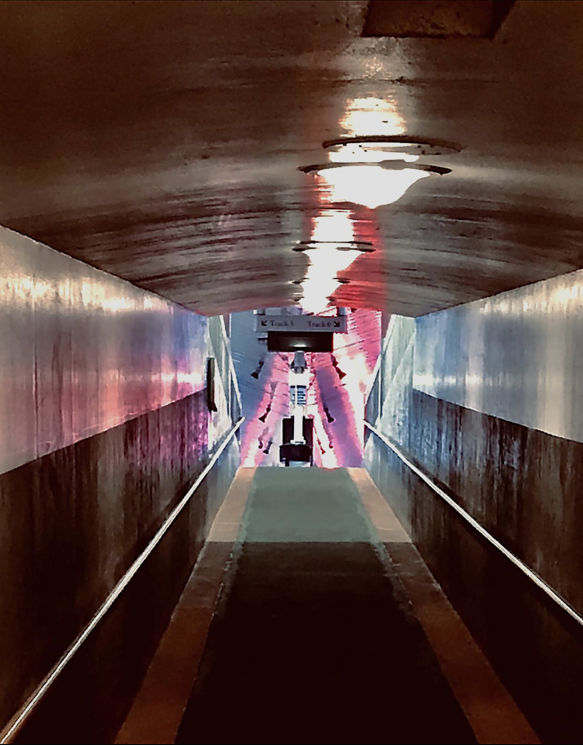Walk down any city street in Los Angeles, turn your head in one direction or another; look up or down or around and you will surely see something that catches your eye, something beautiful, stunning; startling, artistic. Urban art is everywhere here and not always where you might expect it. Sure, dramatic graffiti will capture your attention, gingerbread houses with eclectic colors have high curb appeal, and the creative signs of clever shops can inspire a smile. But sometimes art can be found in places as prosaic and everyday as a passageway to a train track in Union Station, a typically utilitarian space that in a moment just happens to grab the color of nearby lights, shimmer in the movement of a camera shutter, conjuring up an image of walking down a ramp, holding a rail, illuminated by color, right into some mystery or adventure. We call this photo “Urban Art: Surreal.”