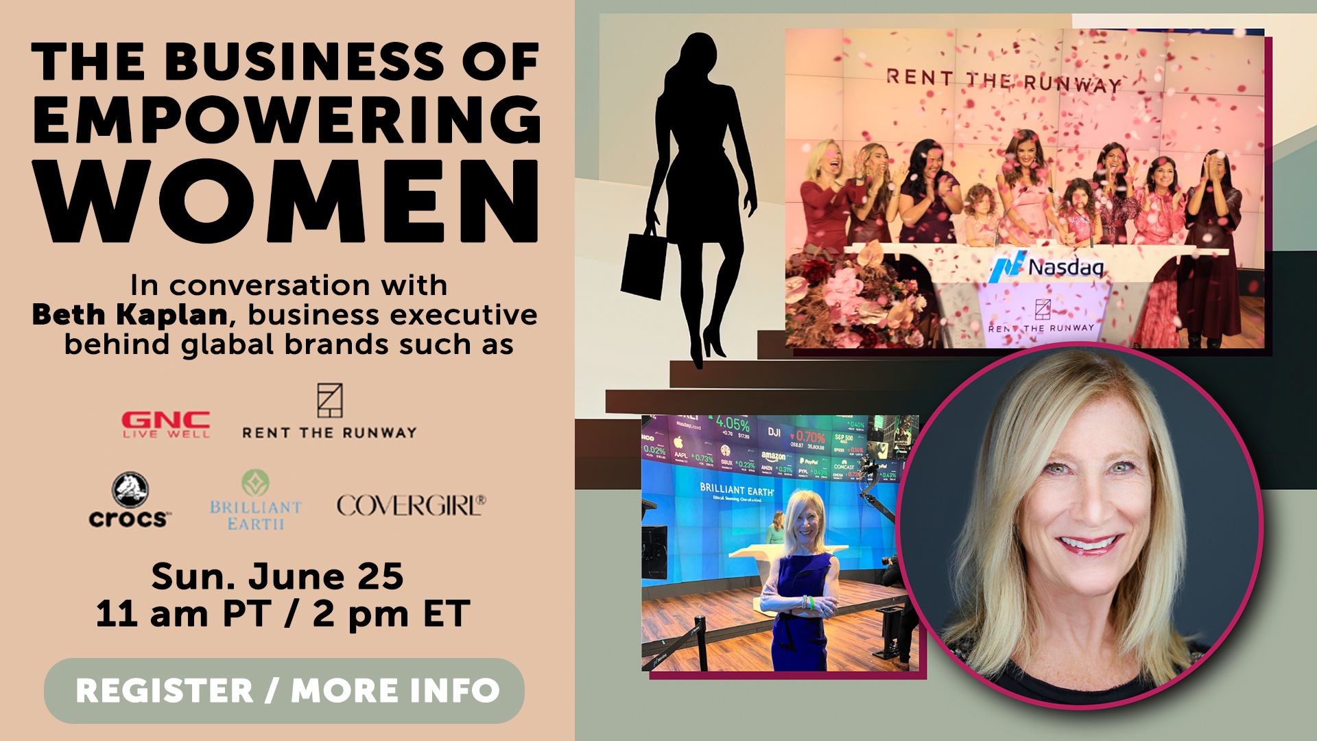 Presented by Sundays with The Braid “The Business of Empowering Women” will be live on Zoom with Beth Kaplan, Business Executive behind global brands such as: GNC, Rent The Runway, Crocs, Brilliant Earth and Cover Girl. Just wow! Reserve your place, ASAP, Ladies!