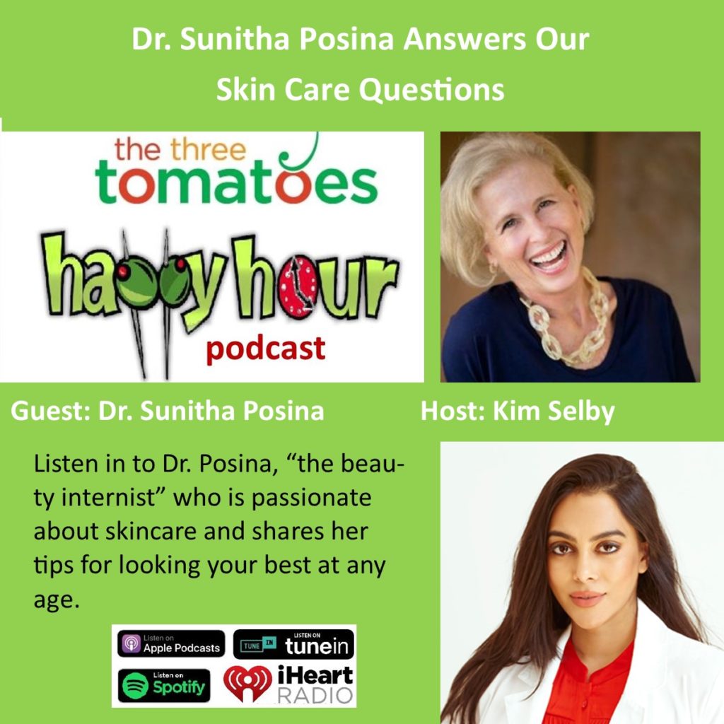 This week’s Happy Hour Podcast is all about skin care. Kim Selby, our San Francisco editor interviews Dr. Sunitha Posina – the “Beauty Internist” who is passionate about skincare and shares her tips for looking your best at any age. Lots of great info is shared, like do you really need 10 products? Listen in to find out. LISTEN IN HERE.