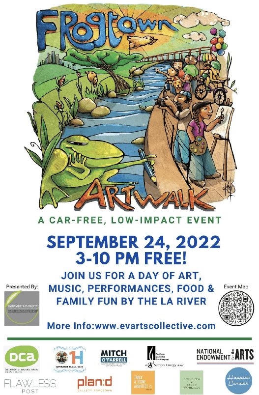 Back in person for the first time since 2018, the 13th “Frogtown Artwalk” welcomes visitors back to the neighborhood for a day/evening of community events and arts along the L.A. River in Elysian Valley (aka Frogtown). You can seek out galleries, music and literary performances, and projections underneath a freeway overpass, Tomatoes.