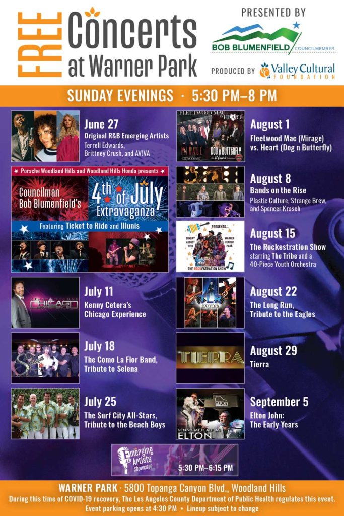 Concerts at Warner Park make for an easy, relaxing and entertaining summer evening for the community. Popular food trucks and booths will be on hand to delight your taste buds and enhance your concert experience under the stars. It’s hard to believe summer is going so fast! Might want to hit one of these concerts soon Tomatoes. The Valley Cultural Foundation has over 45 years of experience bringing entertainment to the people of San Fernando Valley. They love all the wonderful talent they have seen over their long exemplary history. They are deserving of any donation you can provide so they can keep doing what we do.