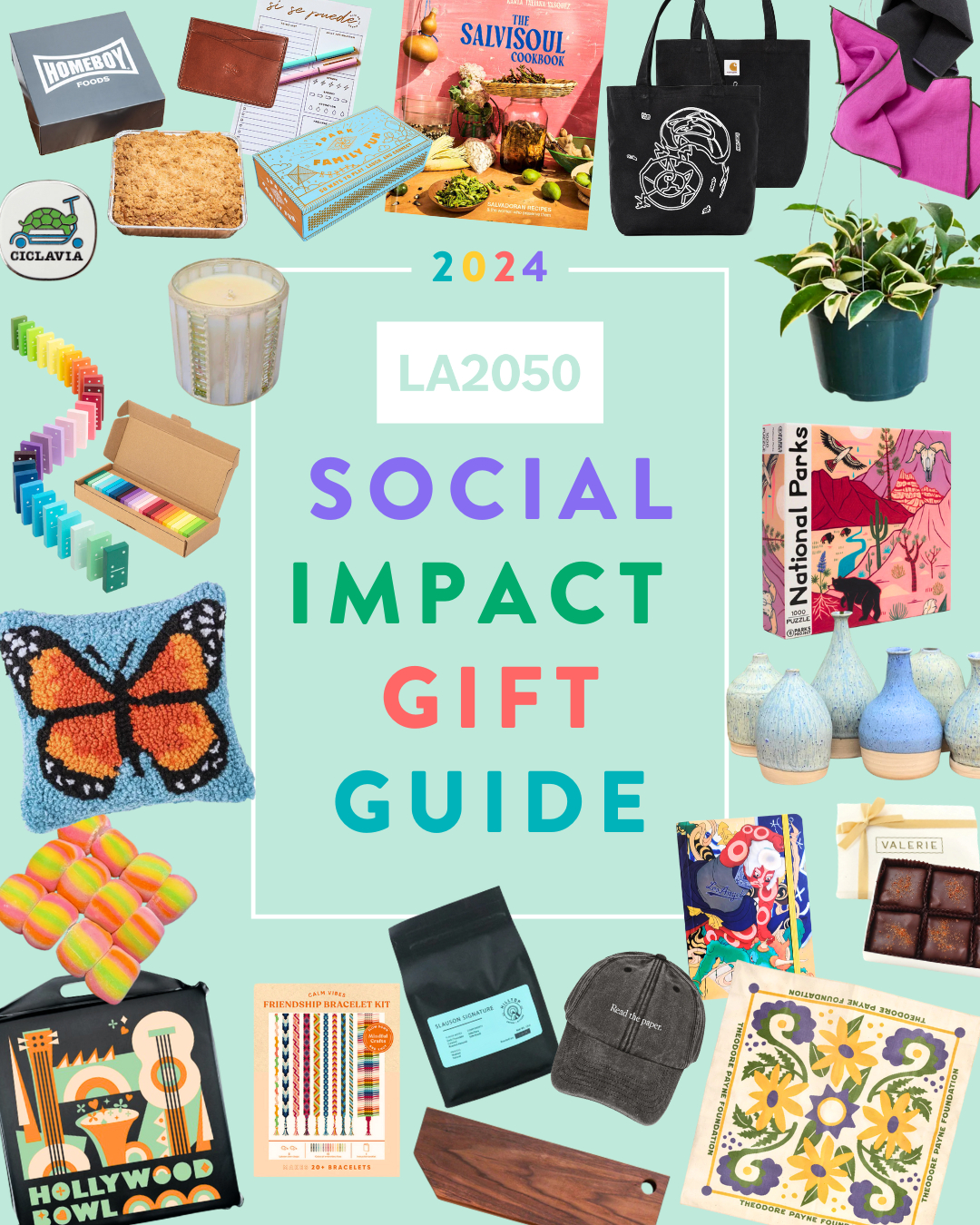 Gifts that do good and sourced from local nonprofits, sustainable makers & BIPOC-owned businesses. Launched in 2011, LA2050 is a community-guided initiative driving and tracking progress toward a shared vision for the future of Los Angeles. As residents, organizations, stakeholders, and policymakers Angelenos can work together toward a more successful Los Angeles – one that reaches our region’s incredible potential and is equitable, thriving, engaged, and empowering.