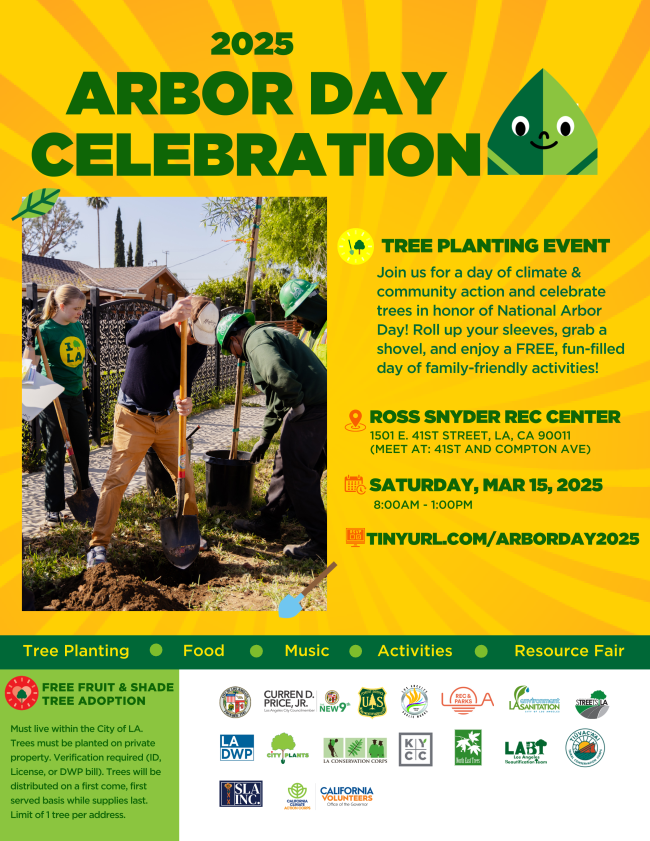 They will be planting over 40 trees in the Central Alameda Neighborhood surrounding Ross Snyder Recreation Center with volunteers from throughout the LA region in honor of National Arbor Day. RSVP to volunteer today.