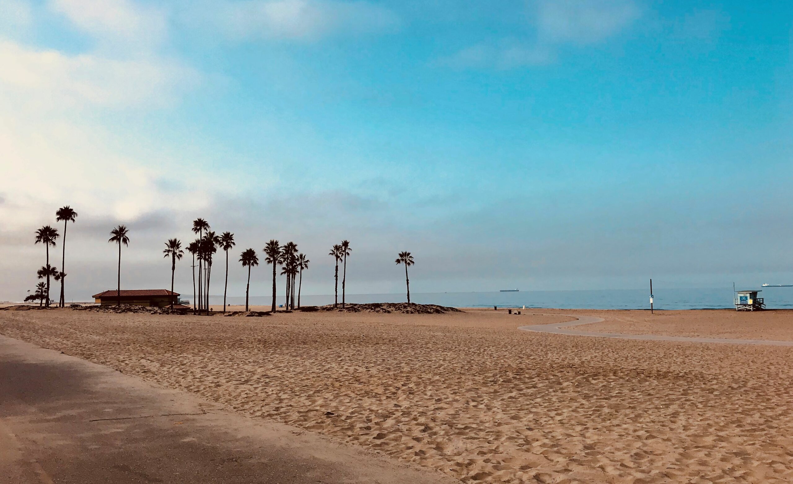There are many joys to living near or spending time at the ocean. The list is as long and varied as the people drawn to its unique appeal and myriad activities. There’s surfing, swimming, skimboarding, and sailing. Picnics with kids under a beach tent, sandcastle design and construction; the delighted watching of seagulls, dolphins, sea lions and seals, even the occasional whale spouting by. There are bicyclists and rollerbladers, skateboarders and wind-gliders, but I remain convinced there is nothing quite like a simple, solitary wander in the early morning hours before the others arrive. With no one near but the patient ships waiting on the horizon to deliver to the El Segundo refinery, a peaceful trek can be had along the Strand in Playa del Rey, winding past empty lifeguard stands to the swishing palm trees and quiet resting spot of this beachside “Oasis,” the name of this week’s photograph. Stop for a moment, take a deep breath, and revel in Mother Nature… aaaaaahhhh.