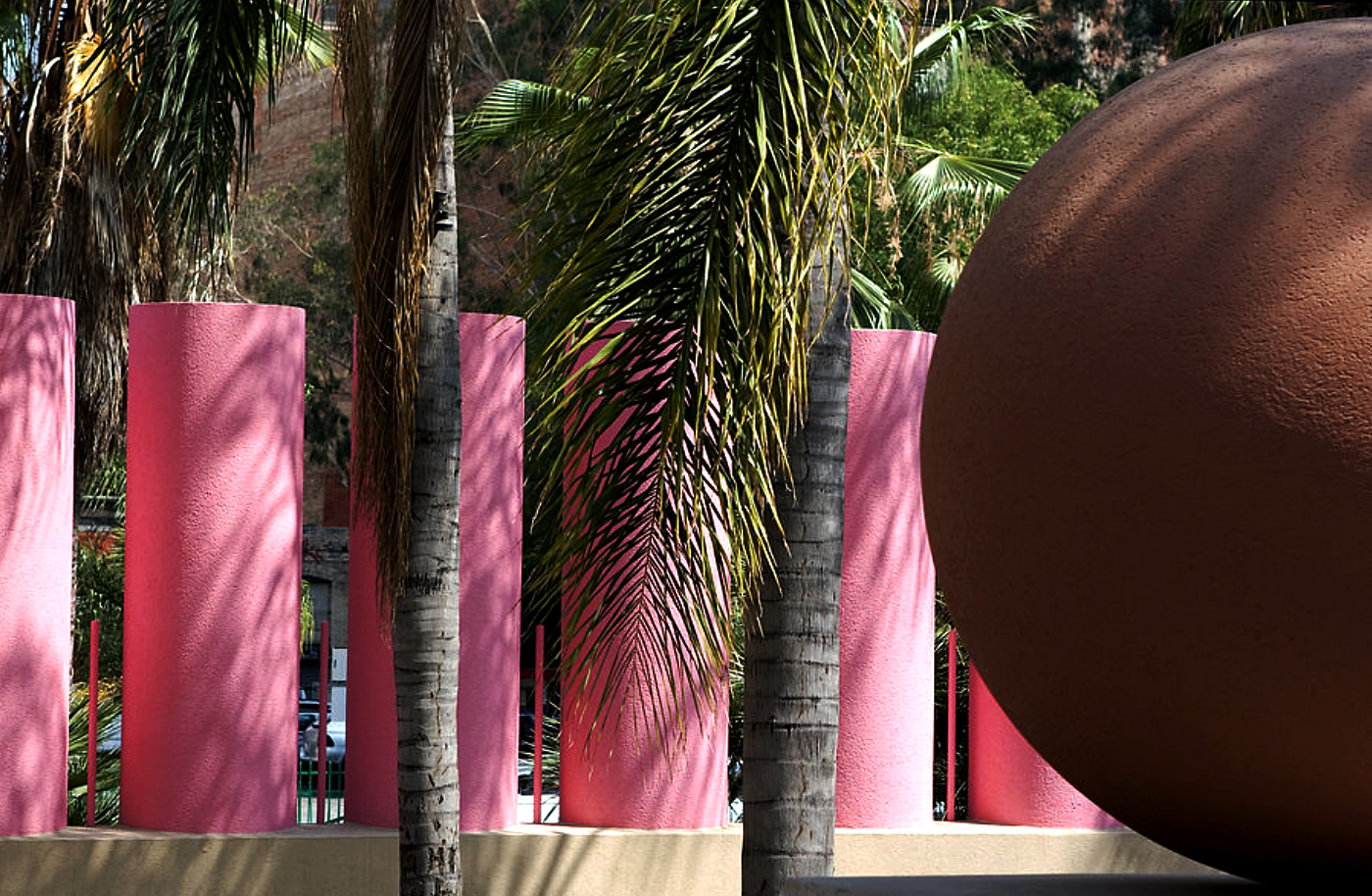 It’s a small park, only one square block in size, but Pershing Square, with its multi-color palette and whimsical architecture, has become one of the most iconic locations in Los Angeles. What the Hollywood Sign is to Hollywood, Pershing Square is to Downtown, and its designation as a place to gather, to start a march; hold a rally, stage a rock & roll event, or set up an ice-skating rink for the kids, makes it a well-known and beloved focal point for urban activity. Originally built in 1886, it evolved through various names and dedications over the years. In 1918 it was finally dedicated in honor of WW1 commander, General John J. Pershing, a militaristic history that seems somewhat at odds with its current focus as a vibrant locale for the diverse cultures of LA to meet and interact. This shot, “Around in Pershing Square,” captures some of the playfulness and color that contributes to the park’s artistic, creative appeal.