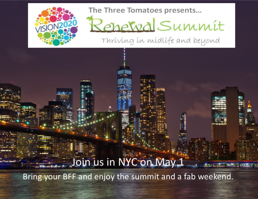 Join me in NYC on May 1 for our fabulous all Renewal Summit. A block of hotel rooms is reserved, and I will moderate a panel on “Women’s Heart Health.” Get details and tickets.