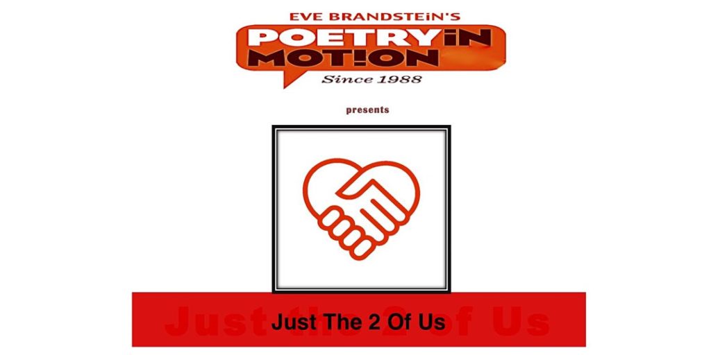 Eve Brandsteins’ “Poetry in Motion” Hollywood Literary Salon is simply maaarvelous Tomatoes, and I’m here to say that poetry is pretty darn cool. This new presentation from Poetry in Motion, “Just the 2 of Us,” is an evening of couples sharing their extraordinary stories/poetry. Methinks it is a wonderful way to celebrate the spoken word. Get your tickets.
