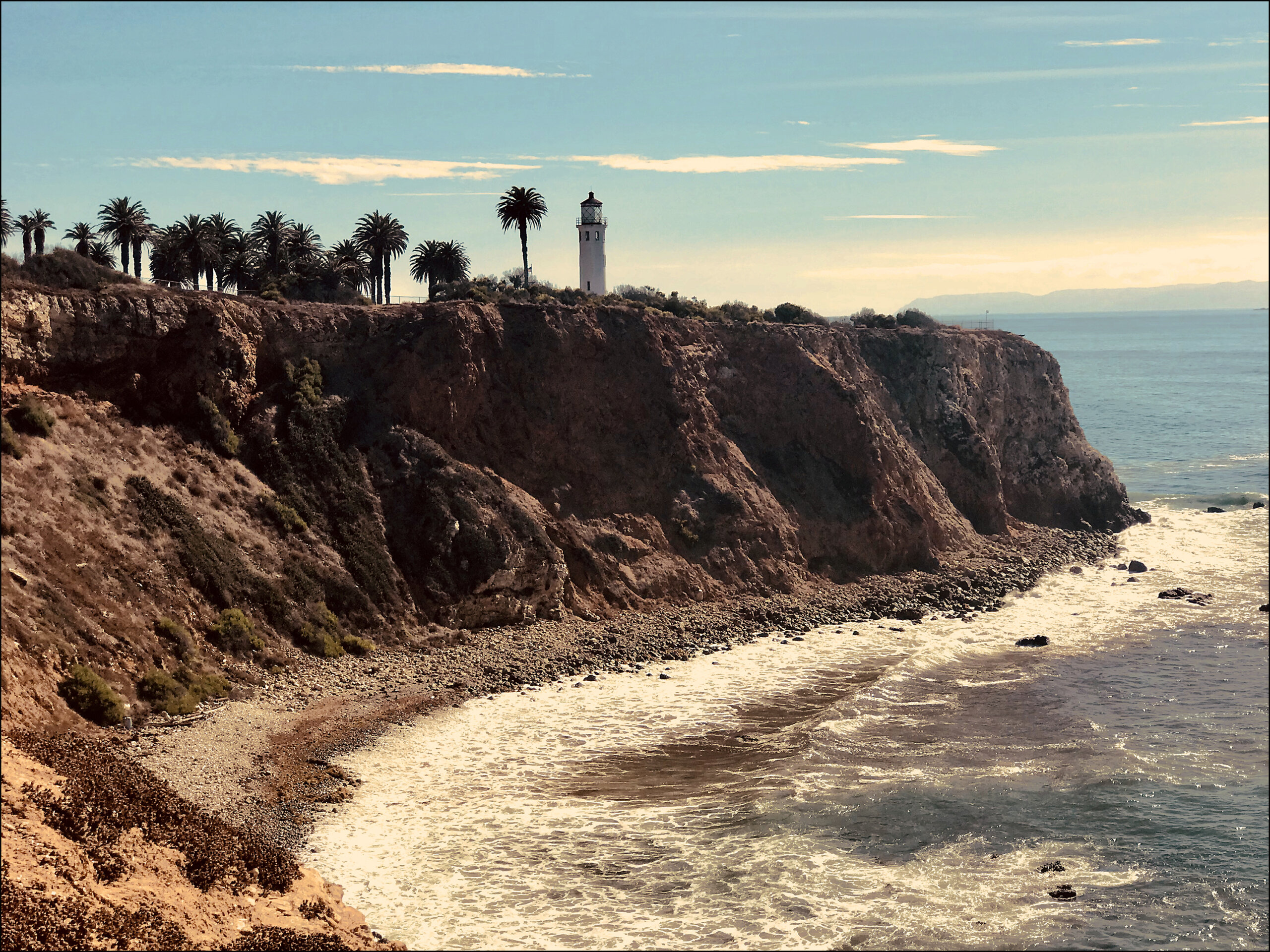 If you get yourself on the iconic Pacific Coast Highway heading south and keep driving through one stunning beach town after another, you’ll eventually find yourself in the lush peninsula enclave known as Palos Verdes, a name that roughly translates to “green wood” (which you’ll find plentiful in the area). With rolling hills, breathtaking ocean vistas, and, yes, some concerns about slip-sliding hillsides, this area evokes passion, appreciation, and the persistent impulse to blurt, “Oh my God, it’s so freaking beautiful!” One of the most memorable stops is the Point Vicente Lighthouse. Perched on a bluff 130 feet above the sea, abutted by a popular park and the Point Vicente Interpretive Center, this 67-foot-high structure was built in 1926 and placed on the National Registry of Historic Sites in 1979. While only selectively open to visitors, anyone picnicking in the park, or simply wandering along the winding walk path at the top of the bluff, can enjoy a frame-worthy view from near or far. This view of mine, captured on a classically picturesque summer day, is aptly titled, “Peering at Point Vicente.”