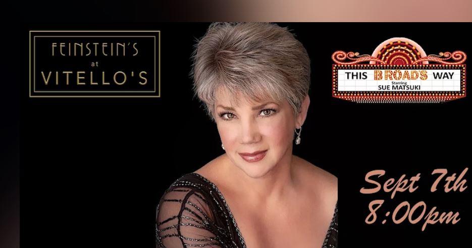 Sue Matsuki takes a deep dive into a program of all Broadway songs. Such as songs from: Wonderful Town, Damn Yankees, Dr. Dolittle, Sweeny Todd, City of Angels, Cinderella, The King & I, How to Succeed in Business, Kiss Me Kate, Wicked…and MORE! “This Broad’s Way”, Sue Matsuki and her Musical Director and Arranger Gregory Toroian have garnered glorious reviews from Broadway World critics. It should be an absolute blast of an entertaining evening, Gals!
