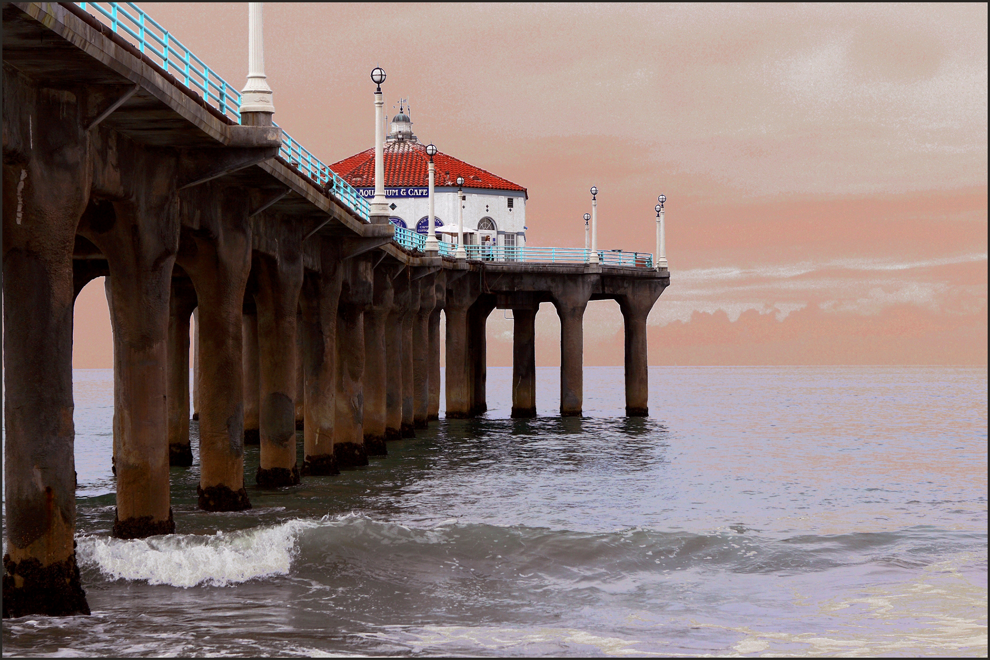 When you live in a “beach town” like Los Angeles (a quaint way of saying, “a world class metropolis on the beautiful coast of the Pacific Ocean”), there is no shortage of eye-catching images that define the city’s role as a coastal wonderland. Yes, we have the stunning skyscrapers of Downtown and Century City, our arty eastside enclaves of museums and galleries; the many hillside neighborhoods of enduring charm, and a riotous variety of colorful, eclectic streets and districts. But the beach — ah, the beach! —has a unique and iconic draw. Every oceanfront up and down the coast of Los Angeles and surrounds has its own style and flavor, but they’re all meccas for locals and visitors looking to surf, sail, picnic with family, walk in the fog, cycle the strand, or just wander down one of the many piers that dot the coastline. This particular one, captured in a photograph titled, “Pier & Pink Sky,” is the Manhattan Beach Pier. With its Roundhouse Aquarium, Volleyball Walk of Fame, and excellent spots for fishing or watching the surfers below, it’s a favorite location all year round. It’s also a California Historical Landmark; built between 1917-1920, it’s the oldest concrete pier on the west coast and certainly one of the most charming!