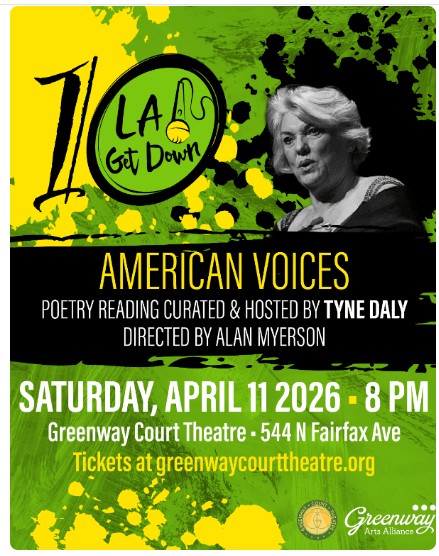 I don’t know about you, but I loved “Cagney and Lacey,” the seminal 80’s TV drama about lady cop partners starring Sharon Gless (Cagney) and Tyne Daly (Lacey). I never did a deep dive on either of these fine actresses, but 40+ years later, I’ve discovered that Lacey loves poetry! Hmmm…Tyne, who as a cop fought crime-in’, now enjoys more Keats and Byron (sorry, couldn’t resist). And if you love La Daly as much as I do, you can see her read a curated collection of her favorite poems at “American Voices,” part of the 10th Annual Get Down Festival, which “celebrates L.A. artist communities through the spoken word in honor of U.S. National Poetry Month.” Performance runs one night only, Saturday April 11th at 8:00pm. So get down at the Greenway Court Theater, 544 N. Fairfax Ave in West Hollywood. Disco shoes not required. GET TICKETS.