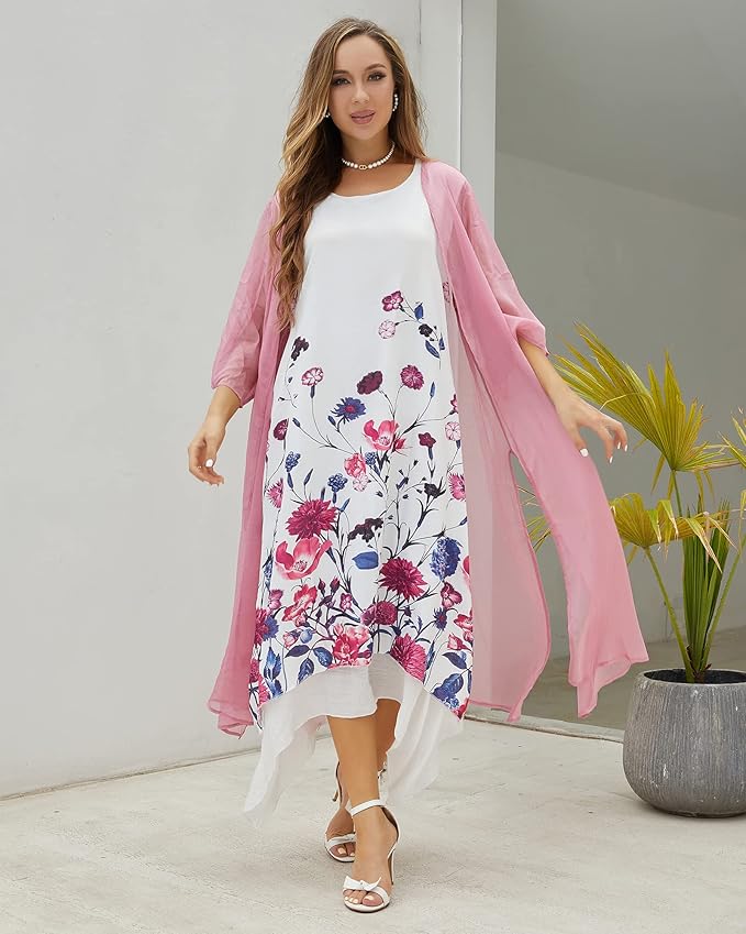 Linen Dress with Chiffon Wrap