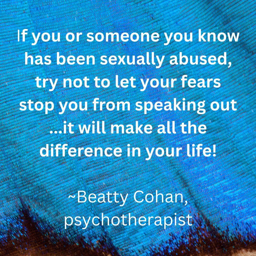 If you or someone you know has been sexually abused, try not to let your fears stop you from speaking out and taking the necessary steps to get some good professional help. It will make all the difference in your life!