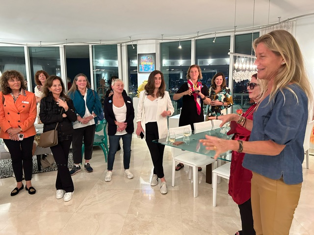 Hesty Leibtag’s gang of art lovers from Toronto (https://partnersinart.ca) made a late-night stop at our Miami condo last week. Led by Kathryn Quinlivan Mikesell and Tami Katz-Freiman of Fountainhead Arts, 24 ladies were on a four-day tour of the Miami art scene. Hesty is a major member of Fountainhead Arts when she winters in Miami but is also very active in her Toronto art group.