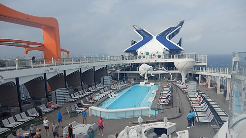 The ship is also fitted with the Magic Carpet-tender dock, designed to prevent hull collisions while anchored offshore. While sailing, the Magic Carpet is equipped with a bar and can be used as a patio,[7] when positioned at three different decks (Decks 5, 14, and 16).