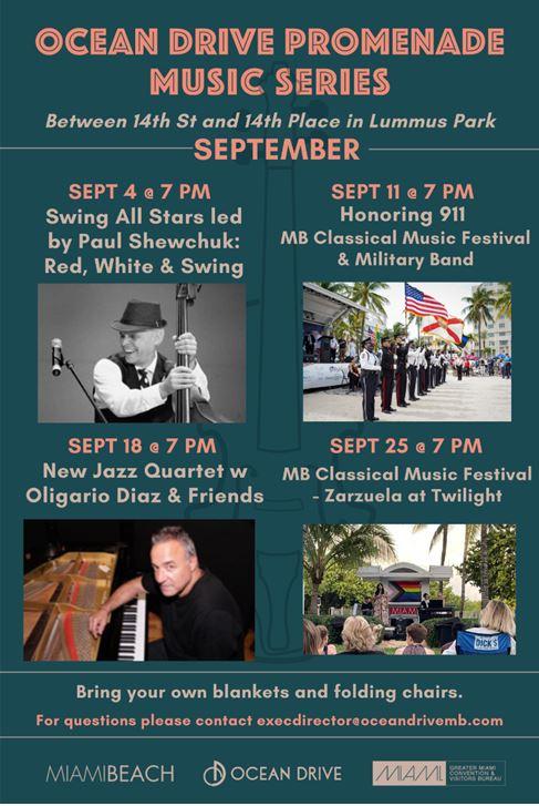 Head to Lummus Park for Swing All Stars, led by Paul Shewchuk: Red, White & Swing. The Ocean Drive Association is making sure that the beautiful Art Deco Street is being frequented by mature adults as much as the young bar hopping kids.