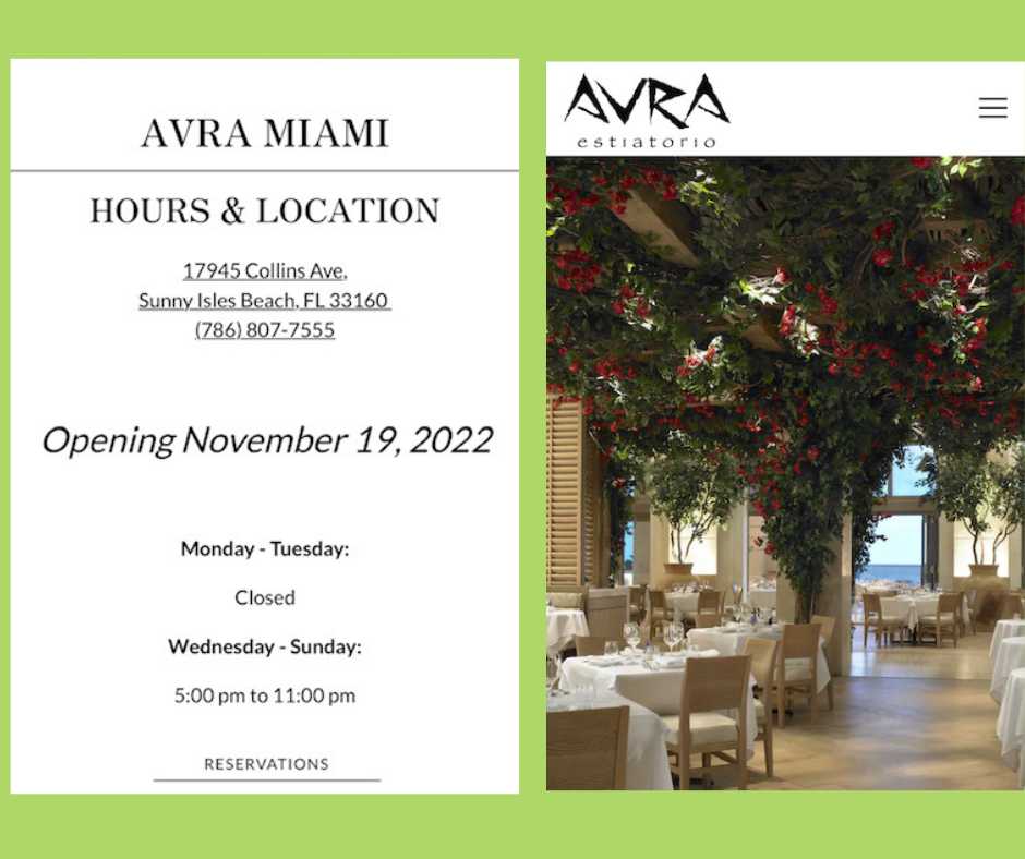 Then Avra opened a massive restaurant on East 60th Street, a few blocks from where we lived at the time. Now that we live in Miami, guess who is following us? Answer: Avra! We beat out Palm Beach.