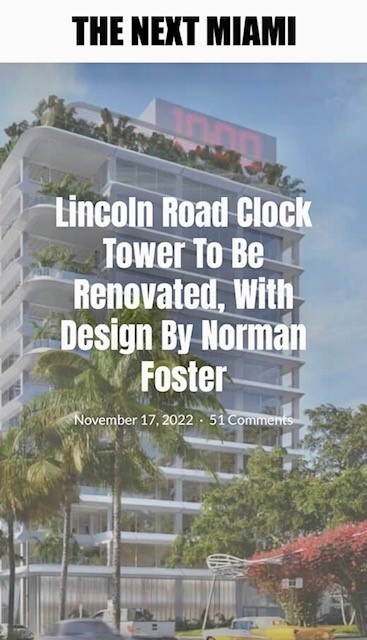 It’s now 27 years later and I’m thrilled that the Lincoln Road Clock Tower is being restored. I plan to watch the numbers change from the 36th floor of my condo from time to time and remember the the good old days.