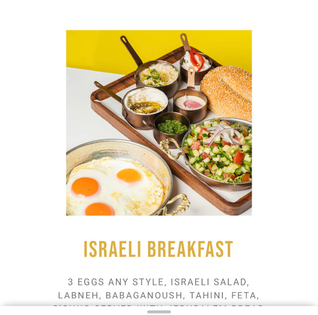 I had the Israeli breakfast because my friends strongly recommended it. I was reluctant at first because I’m not “an egg person.” I don’t normally order eggs when going out for brunch. Anyway, I decided to try it. I was amazed. I don’t know what they put in their eggs but it was like eating caviar. I couldn’t get enough. You can get eggs anyway you like them and they come with so many dips that you are having a great time tasting them all. By the way, wear your expandable slacks. The bread that comes with the meal is one of the best you have ever had.