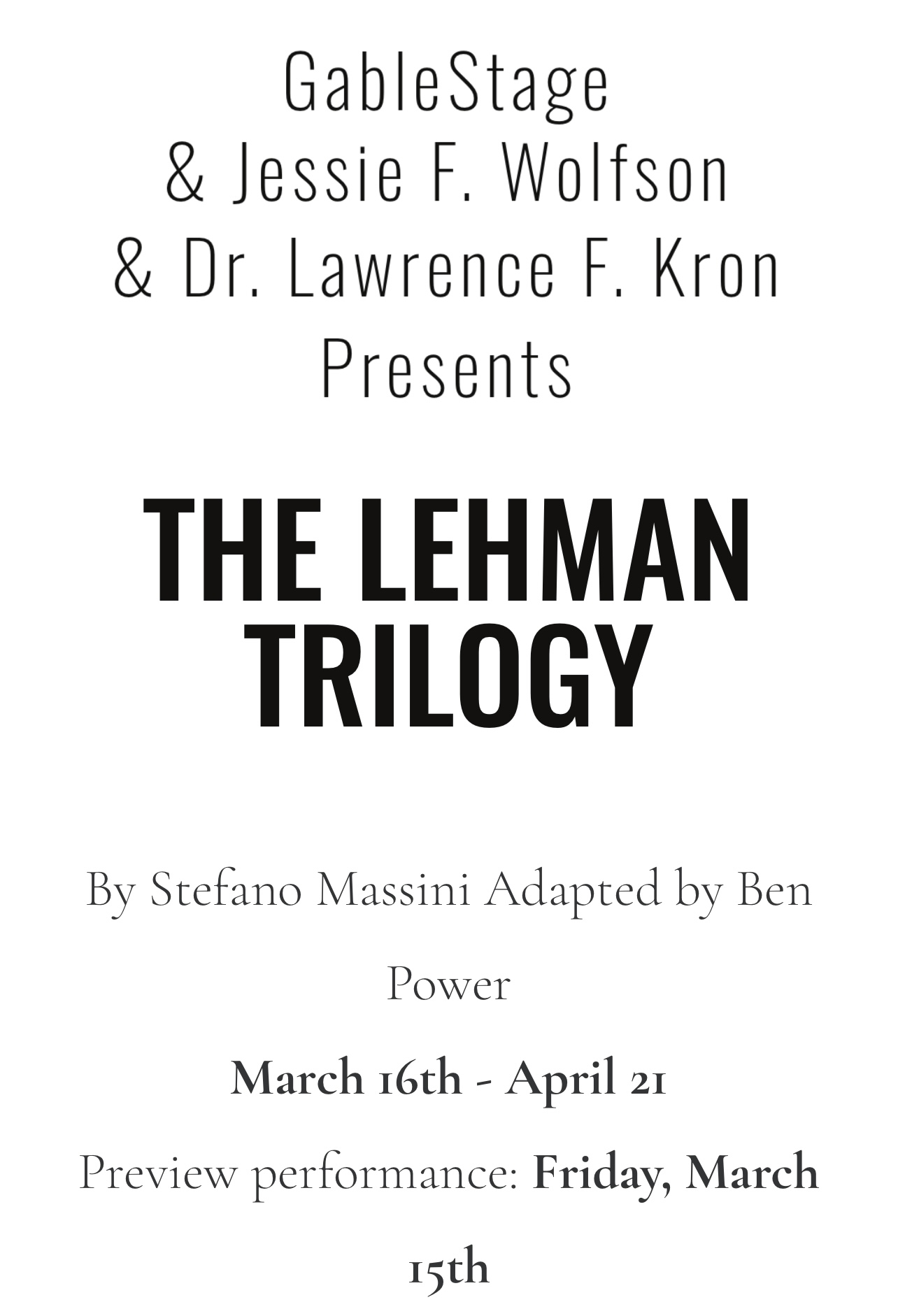 Now – April 21. The Lehman Trilogy
