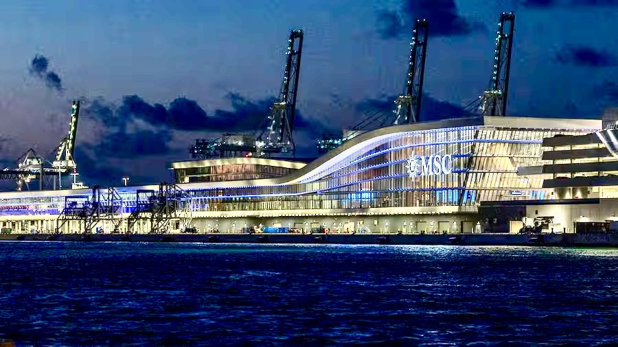 MSC Cruises has opened the largest cruise terminal in the world at PortMiami. The four-story building shines up at night like a beautiful blue travel monument. The building was built in partnership with the port and Miami-Dade County. It can service 36,000 passengers a day.