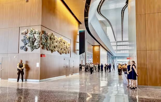 The MSC terminal can simultaneously accommodate two ships. Miami-Dade County will be building a third dock by 2028. MSC World America, the Geneva-based company, said the approximate 500,000 square-foot terminal, will also dock cruise ships from its luxury brand Explora Journeys. The terminal was designed by Arquitectonica of Miami and built by Fincantieri Infrastructure. It cost about $450 million.