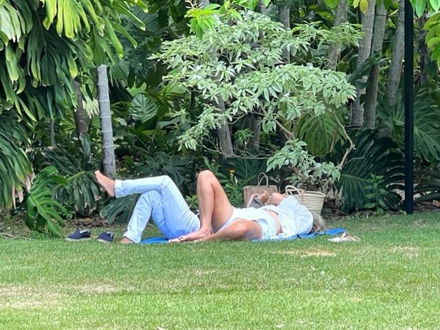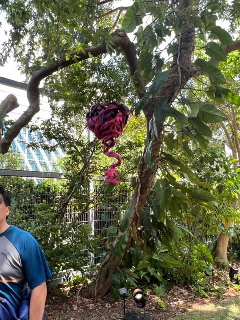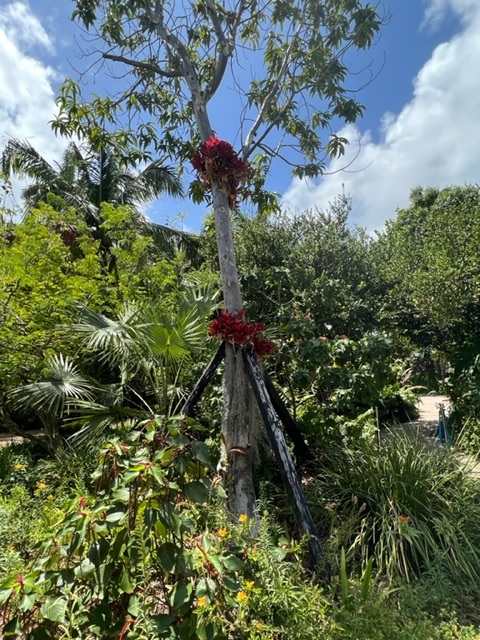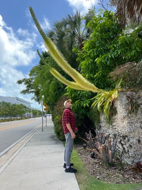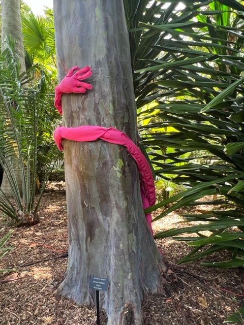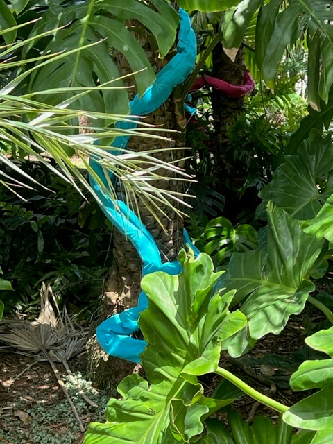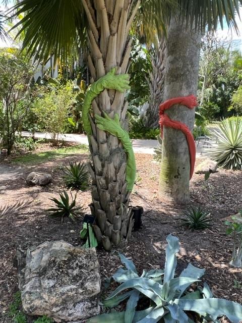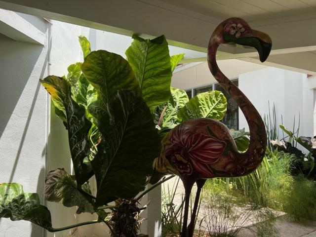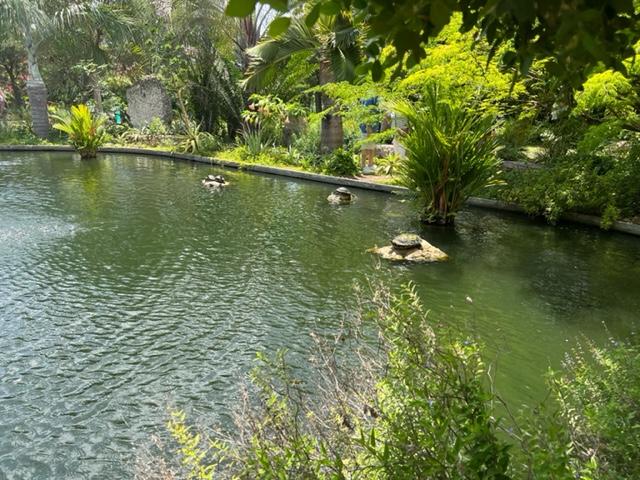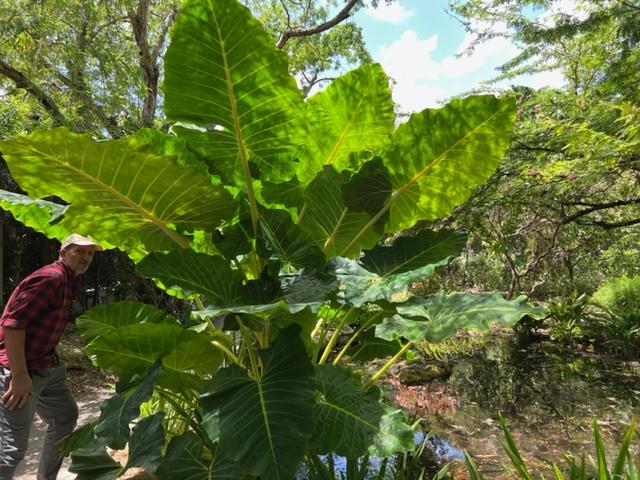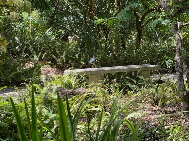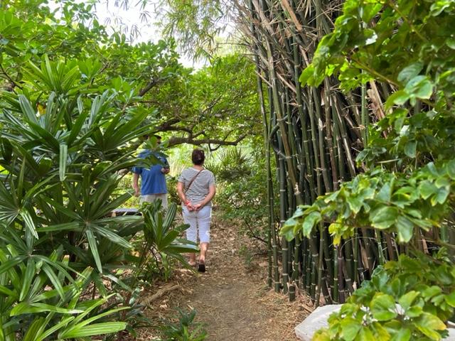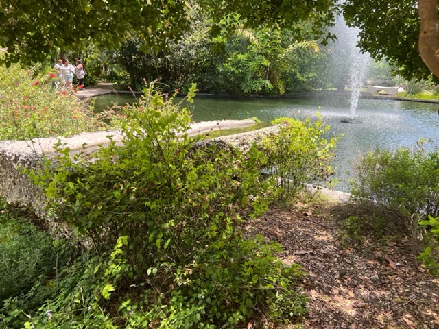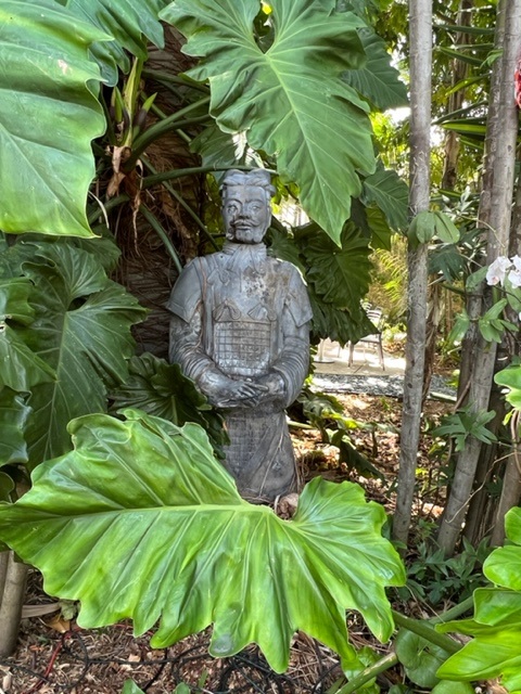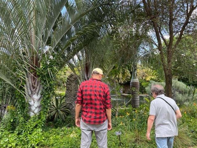 Miami Beach has a three-acre secret. It’s right across the street from the Miami Beach Convention Center, but I would guess that most folks don’t even know that the Miami Beach Botanical Garden even exists. It’s just three acres but once you are inside you feel that you are walking around a huge tropical garden. It feels like paradise. We went there last Sunday to see the Evelyn Politzer exhibit that I wrote about last week. John De Faro, a super talented artist and landscaper, joined Eliot and me, on our visit to this enchanting area. John is a good friend and we love when he accompanies us into the art and garden worlds. He shares his knowledge, and it makes these trips so much more enjoyable.