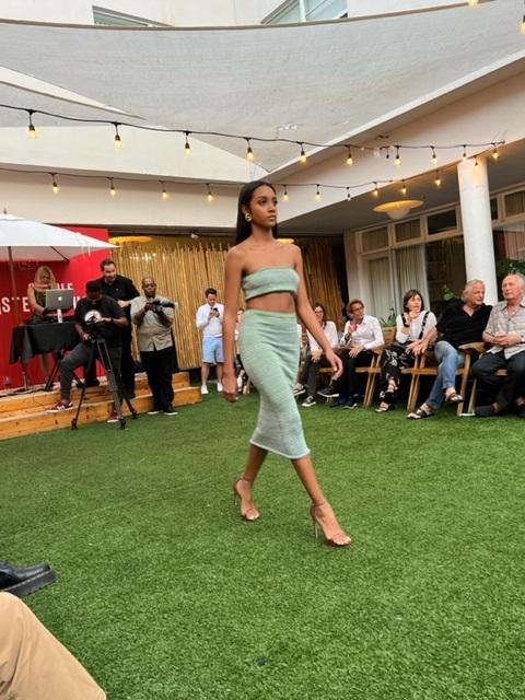 All of the models were wearing KREL Tropical Knitwear, a Miami-based sustainable collection founded by fashion designer and textile artist Karelle Levy in 2002. The majority of styles such as rompers and caftans are geared toward warm climates, but Levy also offers sweaters and scarves for greater coverage.