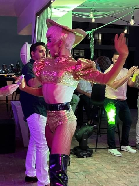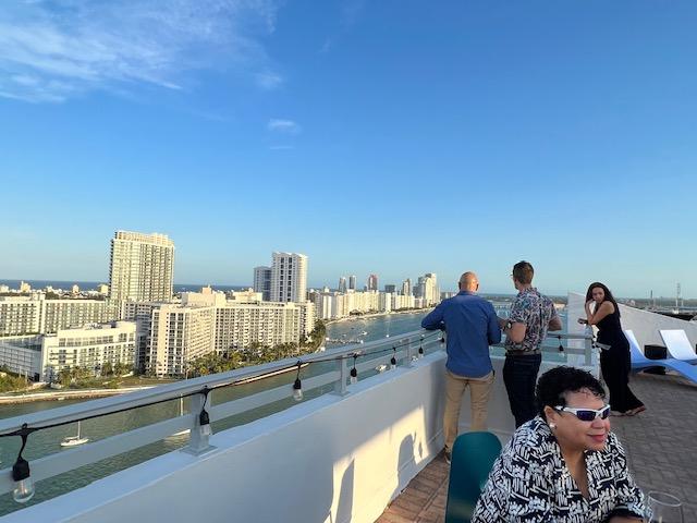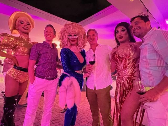 There are some spectacular views in Miami but the one I saw this past Saturday night was over the top. After 25 years of living in Miami, part time, then full time, I thought I saw every view possible. This was a whole new perspective because of its location. We were invited to a birthday party for my friend Tom Shirk on Belle Isle. His husband Felipe Lara hosted the birthday event on the rooftop of their condo which accommodates big parties. It was like something out of a Hollywood movie, a spectacular view, gorgeous guests, the constant serving of delectable hors d’ oeuvres, a sensational band with a Whitney Houston sounding singer, a DJ to fill in during band breaks, and the most incredible Drag Show that you can imagine.