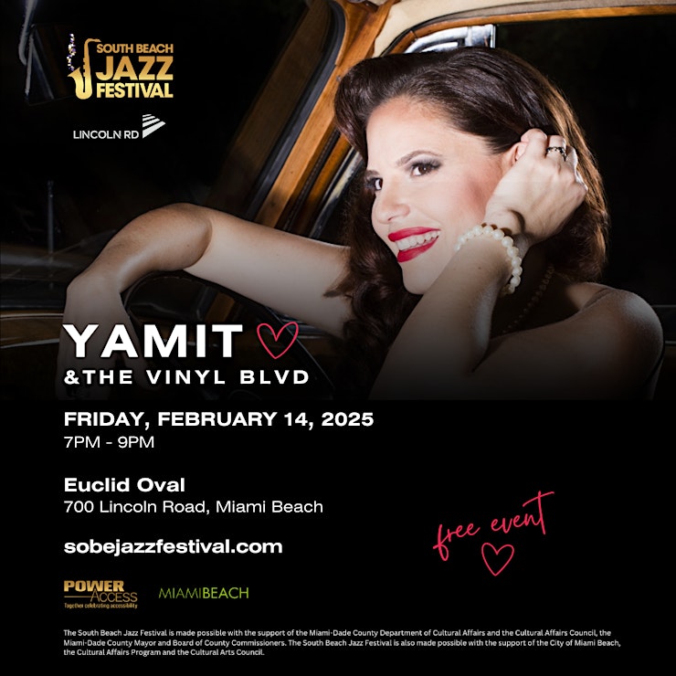There’s so much fun happening on Lincoln Road in February including art installations and jazz. Celebrate the season of love with an unforgettable evening of live jazz at the Valentine’s Jazz Concert featuring Yamit & the Vinyl Blvd! Enjoy the romantic ambiance of the iconic promenade as the band takes you on a musical journey with smooth jazz, soulful grooves, and timeless classics. Whether you’re celebrating with a loved one or enjoying a night out with friends, this free outdoor concert is the perfect way to kick off your Valentine’s weekend.