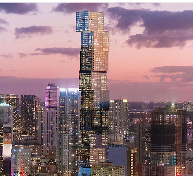 I am not sure why anyone would want to live so high up that everything on the ground looks like ants walking around. I guess that the latest trend for billionaires buying condos in New York is now to do so in Miami as well. Miami is definitely becoming New York with good weather. You are not going to believe this but the Waldorf Astoria Hotel and Residences, owned by Hilton Hotels, is building a 100-story tower in downtown Miami. Rising 1,049 feet above Biscayne Bay, the unique looking high rise will be the tallest building south of Manhattan.