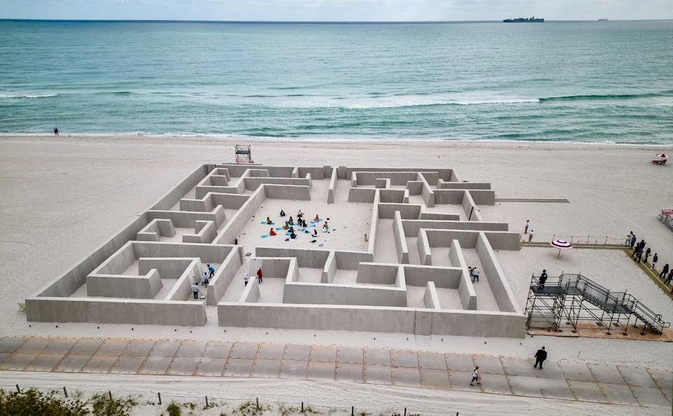 Chilean artist Sebastian Errazuriz said the maze was designed to facilitate human interaction. Entry points at four sides all lead to a central square where visitors are invited to meditate, talk to one another and to free ourselves from the craziness going on in the world today.