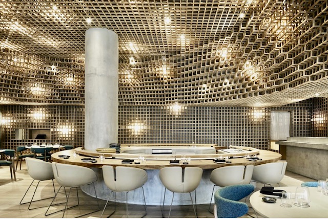 By the way, the interior design at Kosushi is quite overwhelming. It’s a combination of Japanese architecture in a contemporary look. The design features white oak wooden cubes in a complex joinery arrangement with luminaires tied to it, contrasting the organic shapes of the sushi bar and the tables area bench, achieving visual balance and harmony.