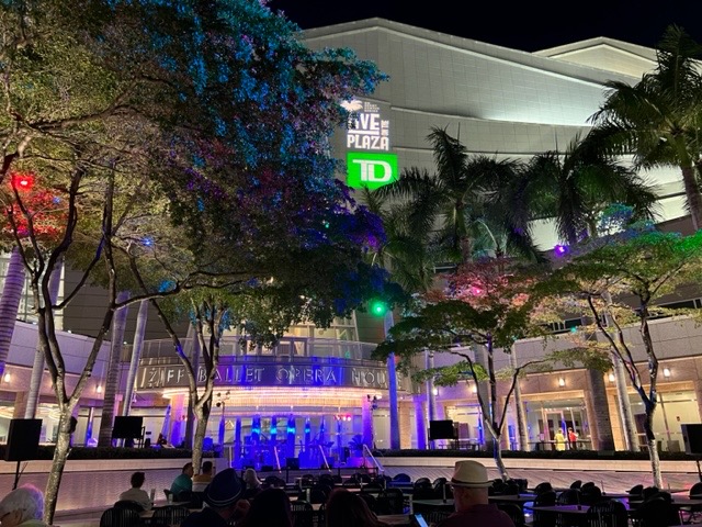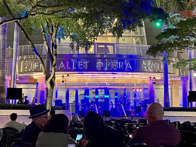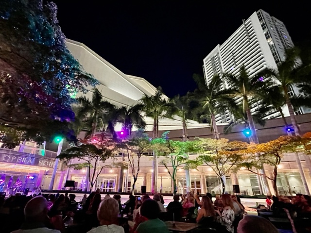 The Adrienne Arsht Center’s outdoor concerts featuring South Florida artists, located in a courtyard called the Parker and Vann Thomson Plaza for the Arts. It’s absolutely wonderful to experience music while the moon is casting its light on you. That special glow makes you feel like all is good in the world.