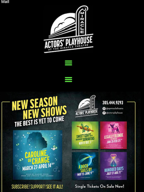 Actors’ Playhouse has produced more than 180 Mainstage productions including Broadway and Off-Broadway style musicals, mystery/thrillers, comedies, and new works, and over 170 Children’s Theatre productions. Actors’ Playhouse has received and has won 90 Carbonell Awards for artistic excellence. The Children’s Musical Theatre is continually voted “Best of the Best” KIDS CROWN AWARD by South Florida Parenting Magazine.