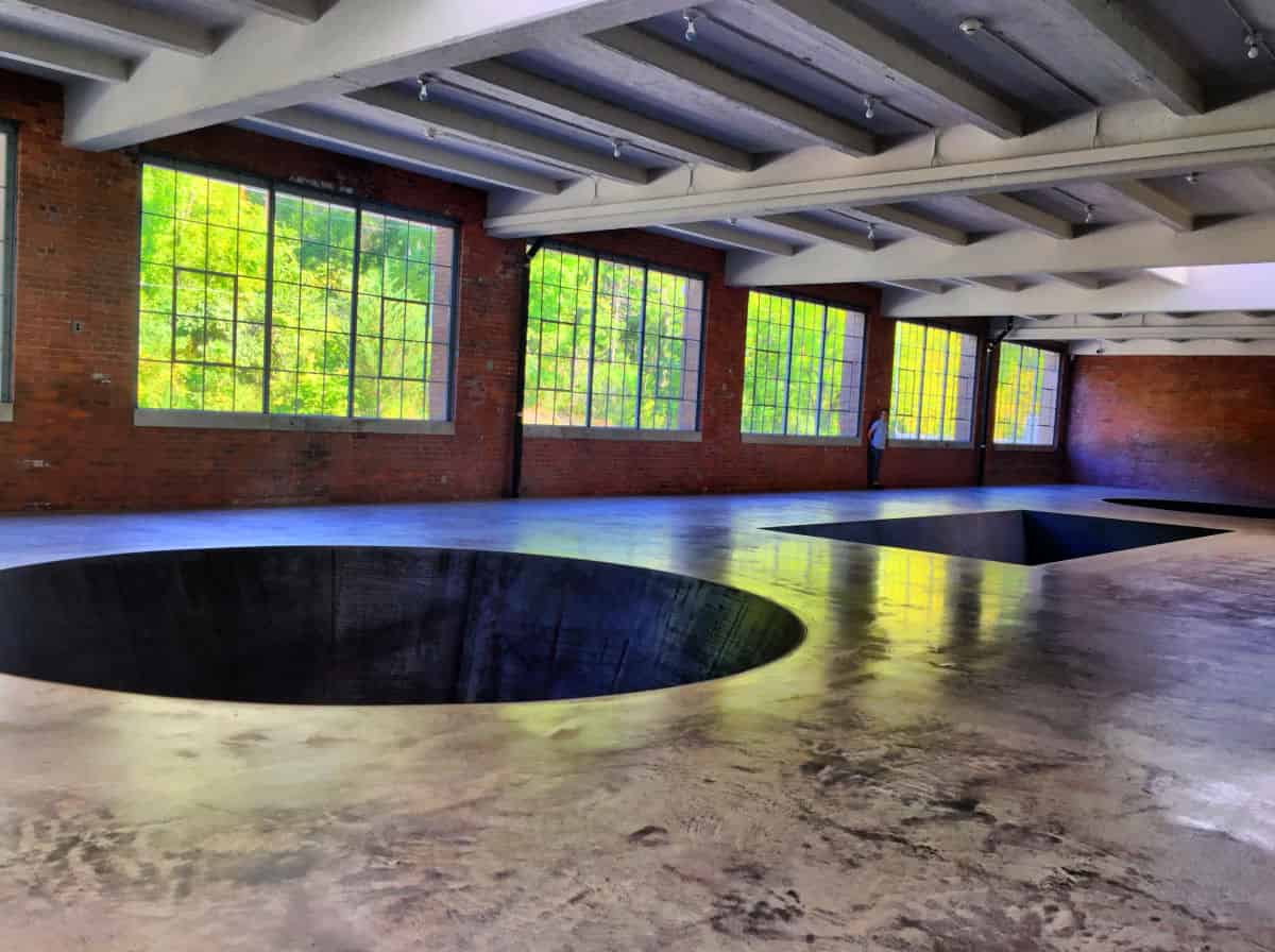 A train ride from Manhattan on the Hudson Riverbanks is DIA Beacon in Beacon, NY. The museum is a branch of the Dia Art Foundation. It is housed in a former Nabisco cookie box printing factory. Its huge interior, 300,000 square foot allows installations and art that is much too big for other museums. Art is set inside the concrete floor, above concrete, on the walls, lit floor to ceiling etc. What is unique is that each gallery was built for the art it contains: Flavin’s florescent flights, Serra’s enormous steel sculptures, Warhol’s 350-foot installation.