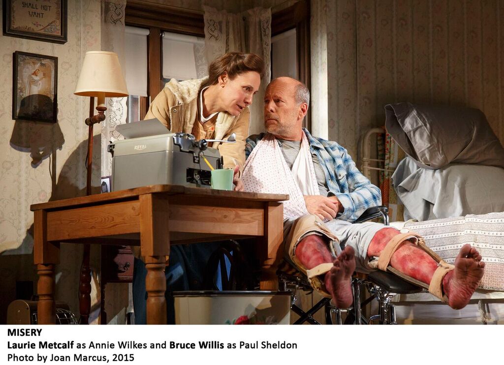 “I’m your number one fan!” Annie Wilkes (Laurie Metcalf) proclaims to celebrity writer Paul Sheldon (Bruce Willis) as he comes to consciousness in Annie’s home, following a car wreck she rescued him from.