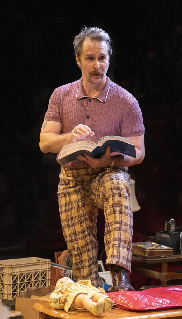 Laurence Fishburne plays Donny, the owner of the junk shop, who takes young Bobby (Darren Criss) under his wing. Bobby does some odd jobs around the shop. A plot to steal back a coin that was sold to a well-dressed man is hatched, and the rest of the play centers around that plan. Another ne’er do well named Teach, hilariously played by Sam Rockwell, is part of that plan. Dressed in horrendous 1970’s plaid pants, Teach spends a great deal of time explaining the way strategies in business take place. All three actors are simply fabulous. Laurence Fishburne is a delight to watch as he commands the stage.